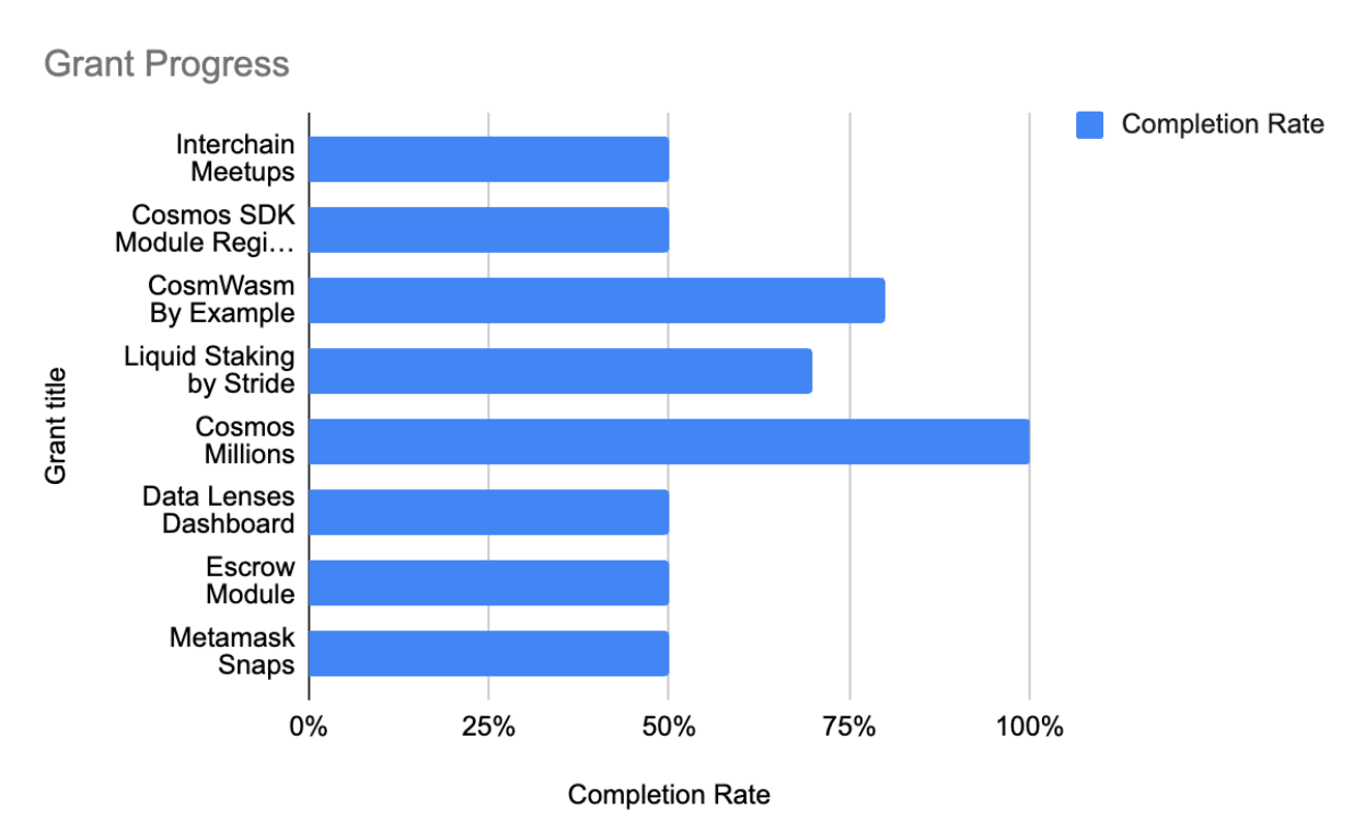 Several grants were awarded in different categories, showcasing the DAO’s commitment to various aspects of the Cosmos ecosystem. Initial meetings have taken place and notable updates will be provided on the next report. More details of batch 3 grants can be found in our twitter post.