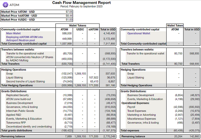 Below are the Balance Sheet, Income Statement, and Cash Flow Management Report of AADAO. The DAO operates on two wallets: the main multisignature wallet for grant delivery and a smaller multisignature wallet for operational expenditures. Please refer to our first transparency report for further details. Below, you will find the current holdings on both wallets: