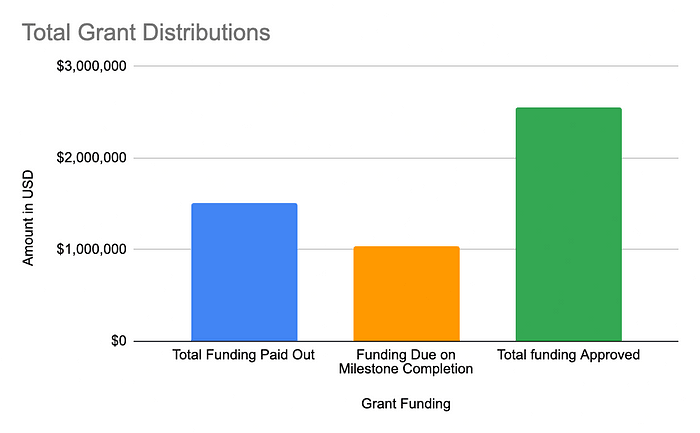 Below, you’ll see a breakdown of the total funds that have been distributed across each category, as well as the funds still to be distributed, contingent upon milestone achievement.