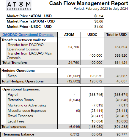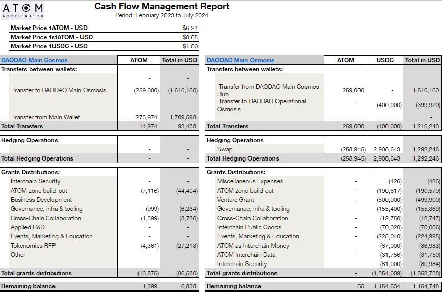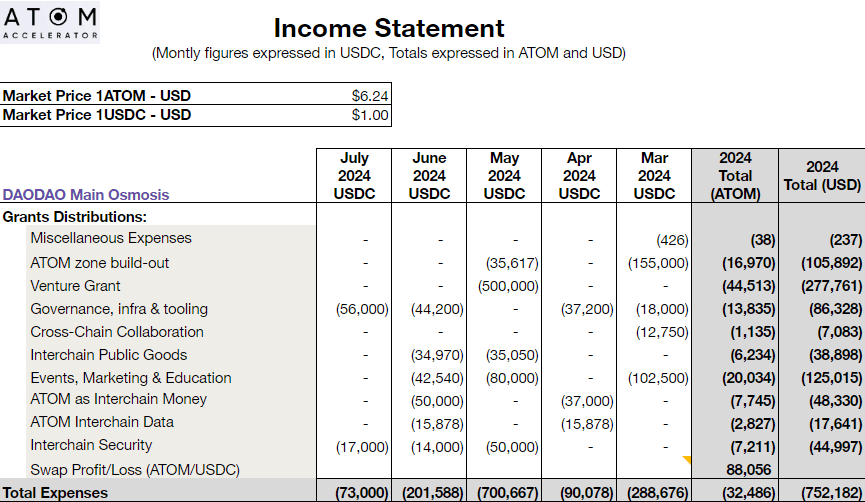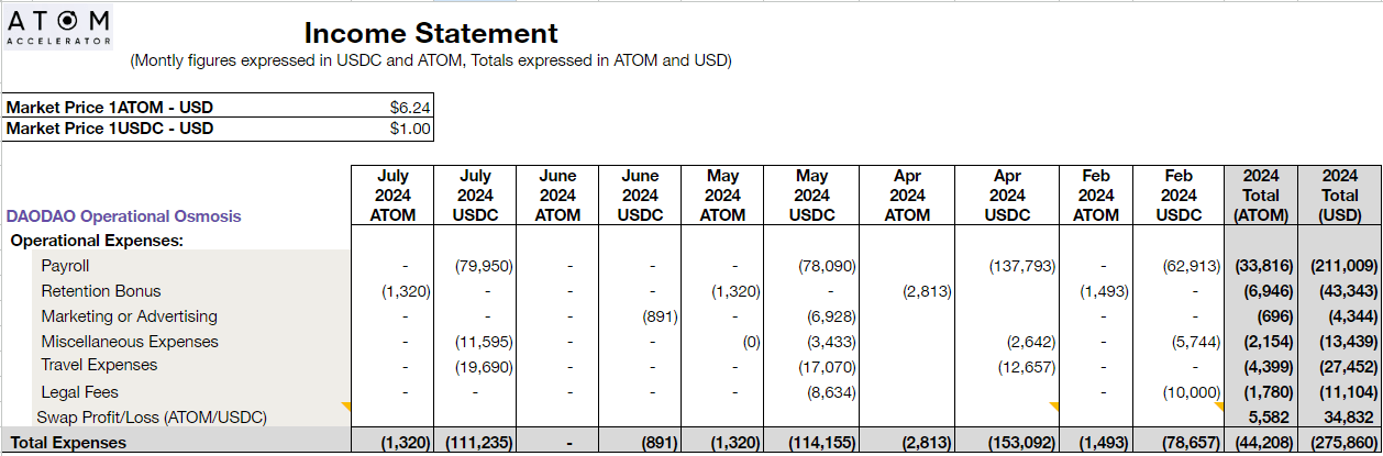 The following covers all financial activity from its primary wallets (main and operational) and subDAO (DAODAO) wallets.