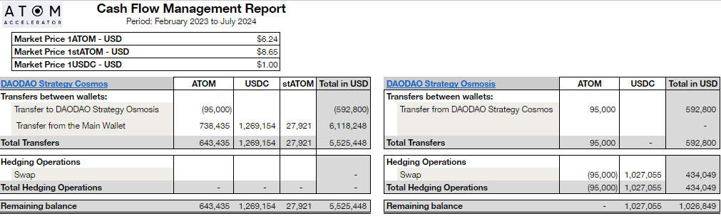 - Detailed financial reporting for main, operational, and subDAO wallets, including balance sheets, income statements, and cash flow management.